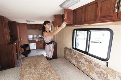 該企業還利用房車長時間在戶外的特點,充分利用太陽能、風能供電。在這兩輛拖掛式房車上,太陽能技術已經得到廣泛應用。據透露,該種拖掛式房車售價為18萬元,目前銷售模式是以銷定產,接受市民的個性化訂制以及提供菜單式服務。