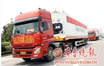 [提要] 26日11時,兩輛滿載10萬斤優(yōu)質蒼山大蒜的運輸車緩緩啟動,帶著蒼山130萬人民的深情厚誼和沂蒙老區(qū)人民的衷心祝福馳援北京災區(qū)。