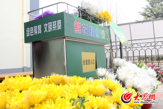 濟南市殯儀館內(nèi)的火紙換鮮花服務點。記者 馬俊驥 攝