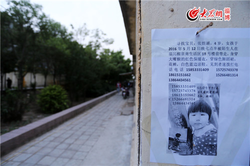 小女孩家門口張貼的尋人啟事。(孫劍 攝)