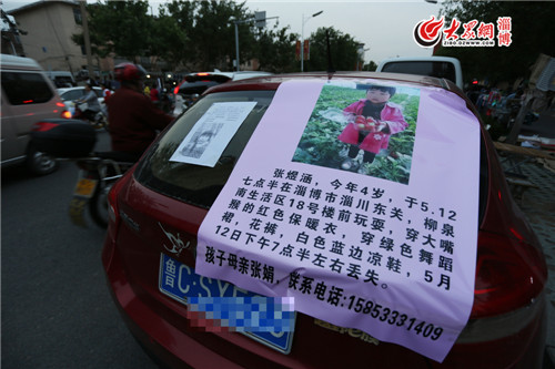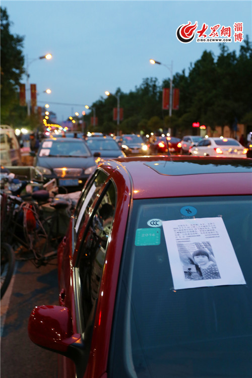 小女孩家附近的私家車上都張貼了尋人啟事。(孫劍 攝)