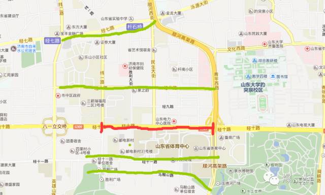 受經(jīng)十路(青年西路—緯一路段)施工影響到的小伙伴們,可以選擇馬鞍山路、經(jīng)十一路、經(jīng)八路分流路線繞行。