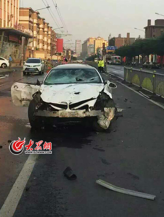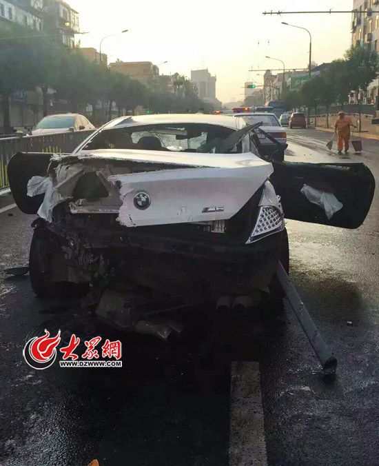 有現(xiàn)場(chǎng)目擊者稱(chēng),寶馬車(chē)未懸掛號(hào)牌,車(chē)內(nèi)的臨時(shí)號(hào)牌也沒(méi)有貼在規(guī)定位置。被撞毀的護(hù)欄共有兩處,其中西側(cè)一段受損最嚴(yán)重,約有十多米的護(hù)欄被撞飛,現(xiàn)場(chǎng)地面是到處是碎片。