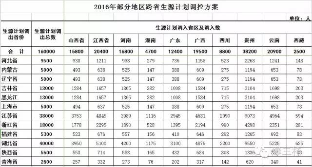 調(diào)出的省市有:河北、內(nèi)蒙古、黑龍江、吉林、遼寧、上海、江蘇、浙江、福建、湖北、陜西、青海;調(diào)入的省有:山西、江西、河南、湖南、廣東、廣西、四川、貴州、云南、西藏。