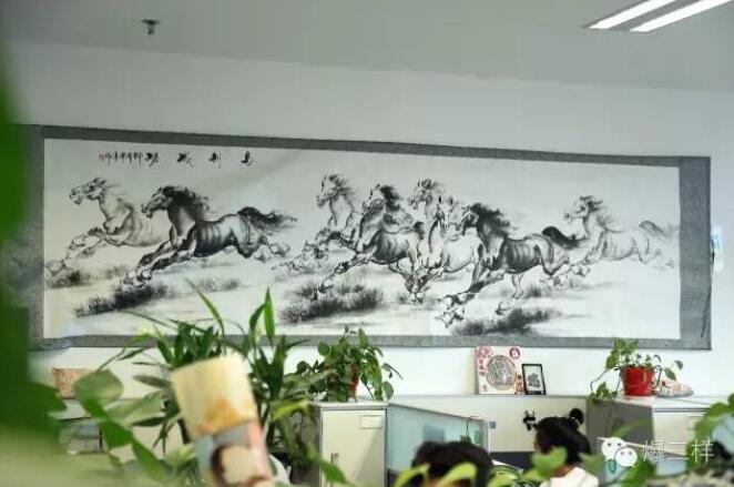 終于來到了8樓,這里是運營中心的大本營。現在有10個工作室在這里辦公,圍繞“固守、融合、突破”三大文章,大眾網正推出以“互聯網+平臺、+產品、+行動營銷”為特色的省級新聞網站盈利模式。從墻上這幅《馬到成功》不難看出,運營的小伙伴們也是蠻拼的。