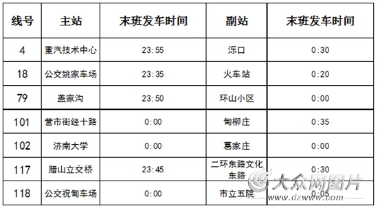 大眾網濟南5月31日訊(記者 王宗陽 通訊員 趙東云)記者從濟南市公交總公司獲悉,自6月1日起,濟南公交將恢復“零時公交網”,并設大觀園、全福立交橋、緯十二路與經十路、無影山中路與黃崗路、燕山立交橋5個換乘點。
