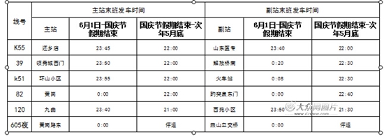 39、k51、k55、82、120和夜605路共6條線路末班車發車分季節運行。