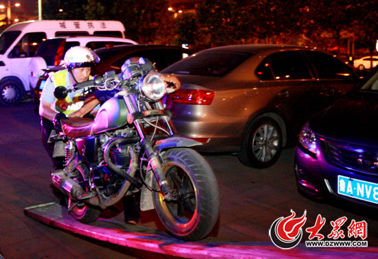 濟(jì)南警方夜襲省體摩托“抬頭黨” 一小時(shí)扣了8輛