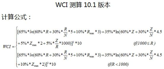 3.微信傳播指數WCI:通過微信公眾號推送文章的傳播度、覆蓋度及公號的成熟度和影響力,來反映微信整體熱度和公眾號的發展走勢。測算公式如下圖。各參數含義如下:R: 總閱讀數(某賬號當期所有文章閱讀數總和);Z:總點贊數(某賬號當期所有文章點贊數總和);N:某賬號當期發布文章數;Rmax:某賬號當期最高閱讀數;Zmax:某賬號當期最高點贊數;R/N,Z/N:平均閱讀數和平均點贊數;Z/R:點贊率。WCI(微信傳播指數)測算公式全面公開,接受各界監督。
