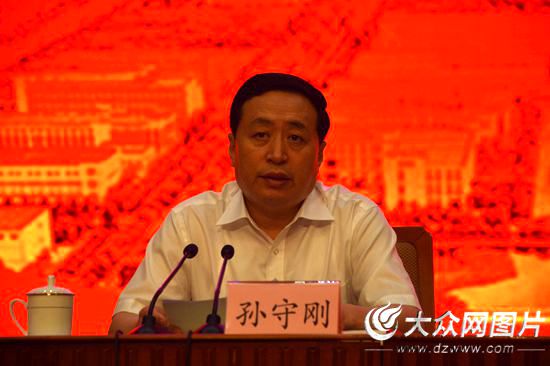 山東省委常委、宣傳部長孫守剛主持報告會。(記者 王宗陽 攝)