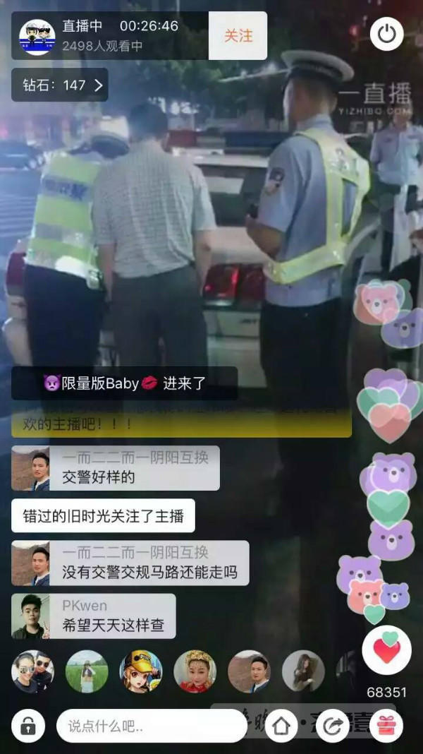 在直播視頻中,可以清晰看到民警執法的全過程,也能夠聽到民警與受檢查車主們的對話。這也引起了眾多網友的關注。“抓住一位。”“又抓住一位!”大家紛紛在網上發出實時評論,還提出了一些問題,得到了其他網友或郭誦的現場解答。當晚3萬多在線觀看人數,或許真的讓鏡頭里的交通警察們當了一回“網紅”。
