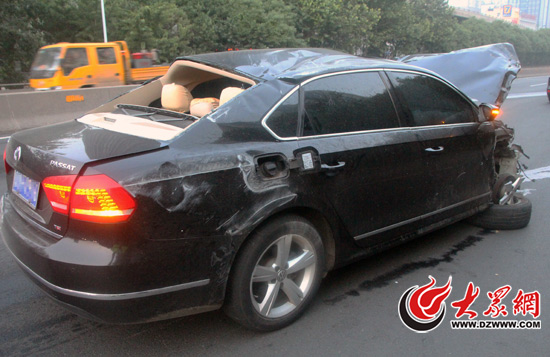 肇事的帕薩特在事故中右前輪斷裂、整車報廢,但肇事駕駛員幾乎沒有受傷。