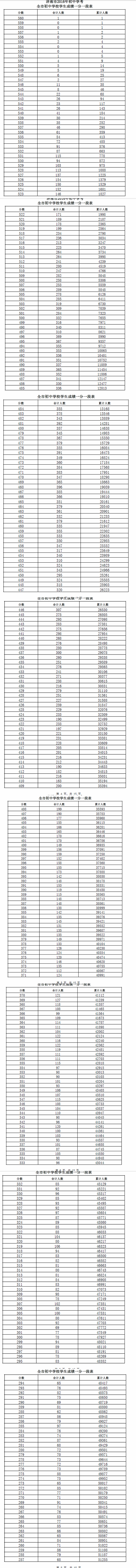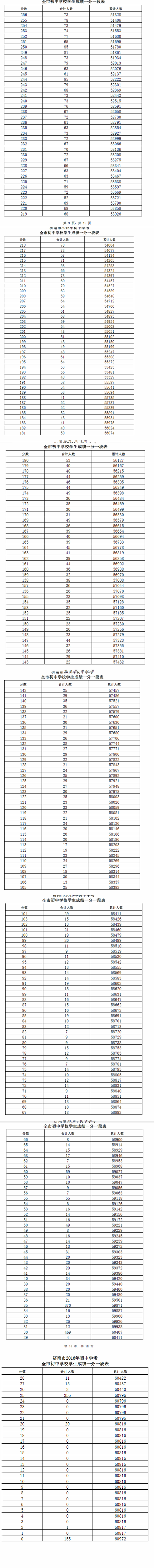 濟(jì)南2016中考成績(jī)一分一段表