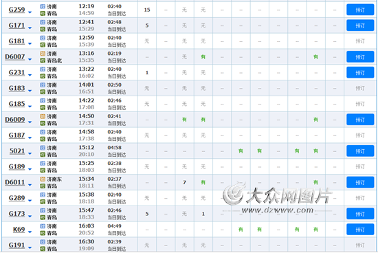 7月1日濟南前往青島的動車車票很緊張。