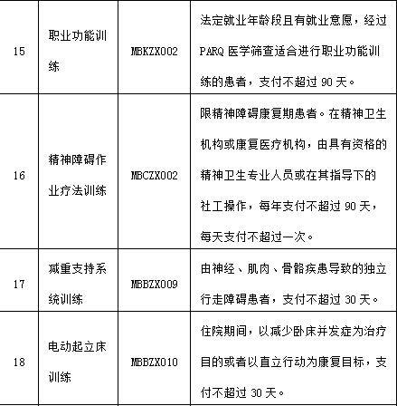 附:納入基本醫(yī)療保障支付范圍的醫(yī)療康復項目
