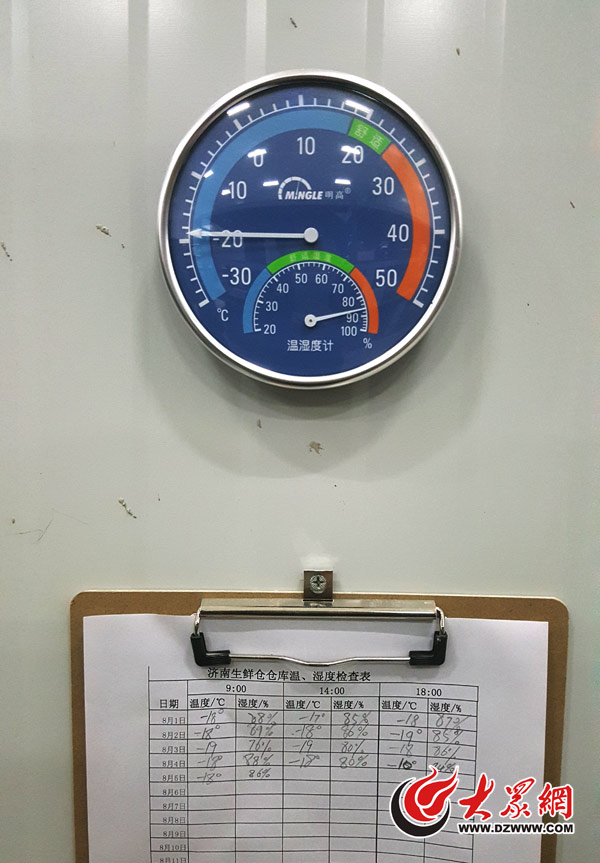 溫度計顯示,倉庫內溫度低至-19℃。