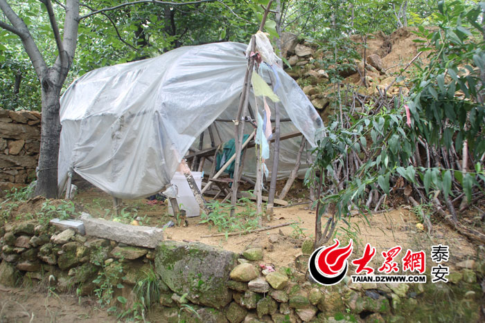 在崔啟傳的果林里,有一個用塑料布和木棍搭成的簡易篷屋。崔啟傳說那是因為平時在地里的時間比較多,萬一下雨跑不及可以在這里躲躲雨。