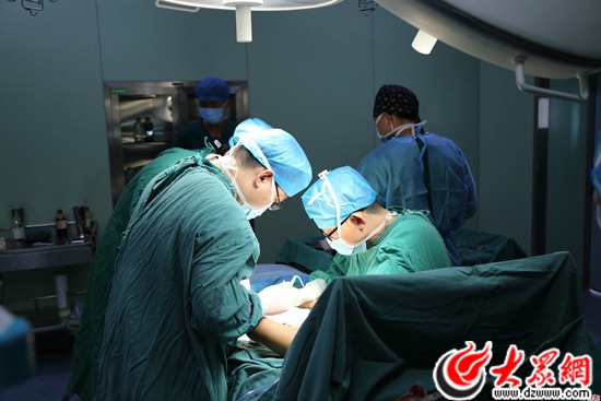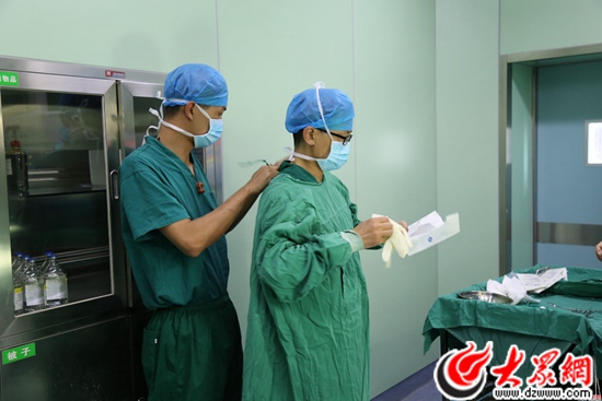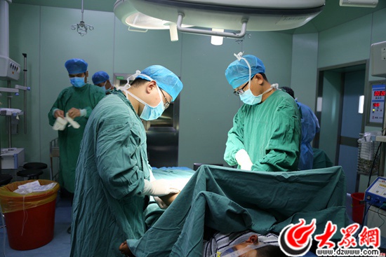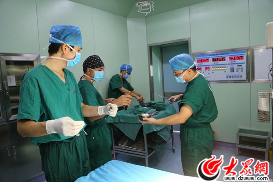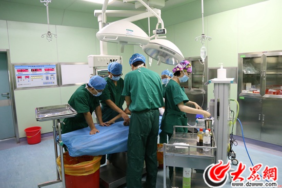 當(dāng)?shù)蒯t(yī)院醫(yī)護(hù)人員與山東醫(yī)療專家一起進(jìn)行手術(shù)。