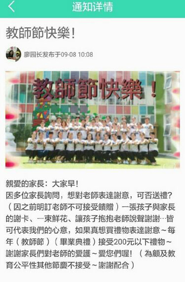 幼兒園長發文稱家長教師節想送禮不要超過200元