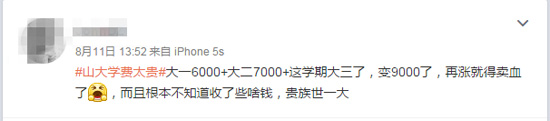 山大學生吐槽學費貴的部分微博截圖。