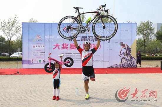 “黃島發(fā)展杯”山東省第二屆沿海騎行大獎(jiǎng)賽日照站騎行線路經(jīng)過(guò)奧林匹克水上公園、萬(wàn)平口大橋、綠洲路,單程長(zhǎng)度6.7公里,參賽選手需要按照線路環(huán)繞騎行4圈,全程騎行路程26.8公里。在眾多參賽選手中,一個(gè)獨(dú)特的身影吸引了在場(chǎng)每個(gè)人的目光。日照隊(duì)的王永海是一名殘疾運(yùn)動(dòng)員,他曾獨(dú)腿騎行318川藏線,榮獲過(guò)2013年體壇風(fēng)云人物殘疾人體育精神獎(jiǎng)。他說(shuō),這類比賽他經(jīng)常參加,但因?yàn)楸菊举惖蓝鄰澋赖年P(guān)系,過(guò)彎時(shí)占劣勢(shì)。盡管如此,他在本次比賽中仍然取得了中年組第7名的好成績(jī),在場(chǎng)每個(gè)人都為他自強(qiáng)不息的精神而動(dòng)容。