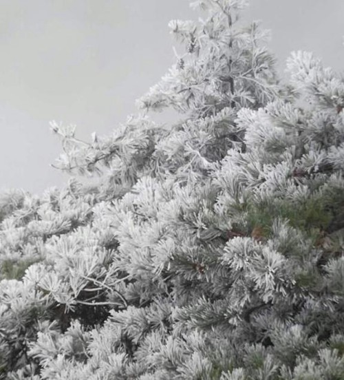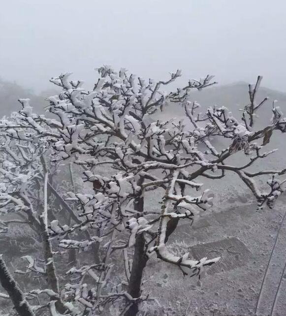 南天門管理區工作人員說,山頂能見度較低,由于地表溫度還比較高,所以山頂積雪很少。