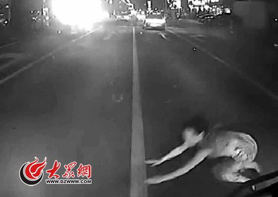 隨著調查的深入,交警查到一條很重要線索:這名女性死者在事發前半個小時左右曾撞向一輛公交車。監控畫面顯示,公交車在行駛到舜耕路舜玉路路口以南時,這名女子突然從路邊沖向公交車車頭,幸好公交司機剎車及時才沒有撞到她。隨后,民警從大貨車的臨時停放地點附近調取了一段監控錄像,視頻中能清晰的看到,這名女子主動靠近過大貨車,并蹲下身子鉆進了大貨車車底。