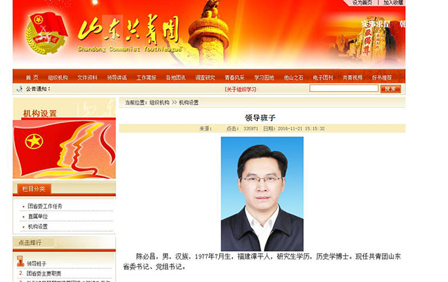 大眾網濟南11月22日訊 今天上午,大眾網記者從共青團山東省委官網獲悉,陳必昌任共青團山東省委書記、黨組書記。