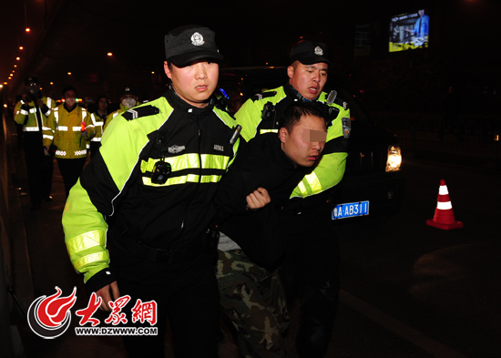 12月31日晚上10點半,濟南天橋交警在北園高架銀座下橋口查處酒駕,20多分鐘內連續查了4名涉酒的司機,晚上10點52分,交警見一輛湖南號牌的尼桑轎車企圖掉頭逃跑,民警迅速上前將該車攔停。車門打開,一陣濃烈的酒氣從車內散發出來。