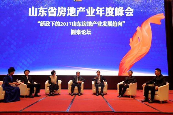 為助力山東房地產企業更好發展,主旨演講結束后,天津大學建筑與設計規劃總院院長洪再生、齊魯置業名譽董事長馬瑩、綠地集團山東房地產事業部總經理金成發、濟高控股董事長李昊、銀豐集團董事長王偉進行了主題為“新政下的2017山東房地產業發展趨向”的圓桌主題座談,圍繞2016年山東省房地產業的調控政策、2017年的樓市走向,對建筑規劃設計、房地產行業轉型、市場變化預測、土地市場運作、戰略布局等話題進行了探討和預判。