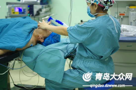 1月18日,大眾網記者全副武裝,進入青島市中心醫院手術室,記錄下“大肚子”麻醉師最真實的工作狀態。