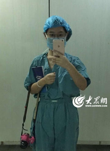 經過嚴格消毒后,大眾網記者穿上麻醉師的工作服,準備進入手術室采訪。