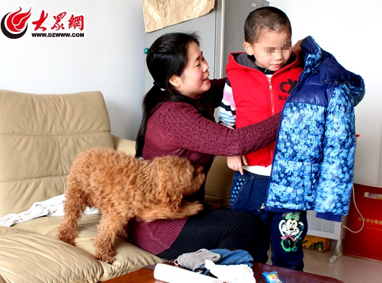 到家了,徐霞給小宇脫下棉襖
