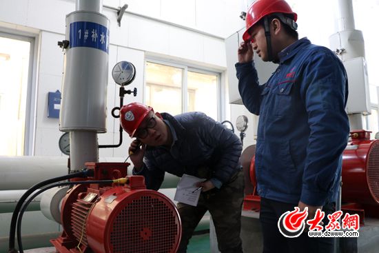 淄博熱力有限公司生產處副處長范新正在檢查檢測點的情況