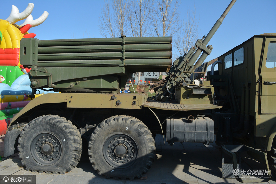 2017年1月30日,大年初三,山東省濱州市惠民縣的一家公園內,正在舉行一年一度的廟會。 公園內停放的退役的導彈車!