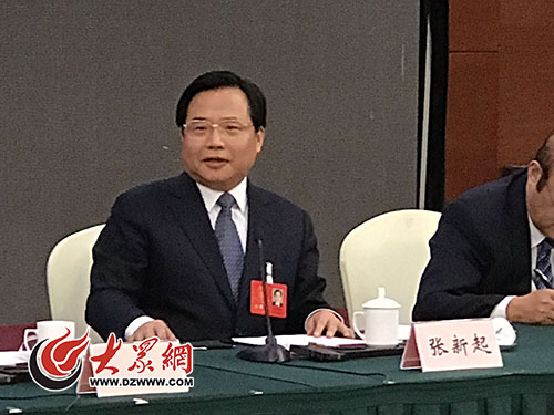 省人大代表、青島市長張新起在參加青島代表團分組審議時發言。