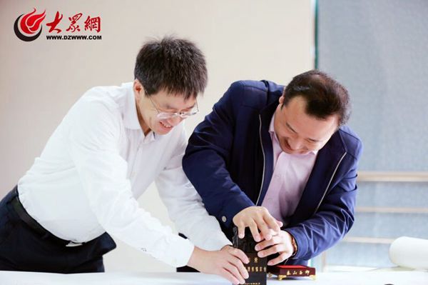 山東省互聯(lián)網傳媒集團總經理林忠禮向聯(lián)泓集團贈送了聯(lián)席會印章并印在卷軸上。