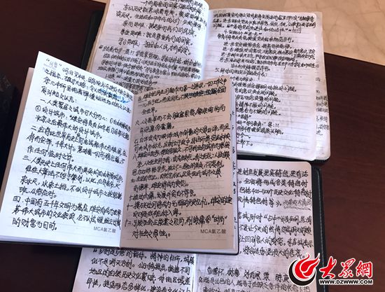 擺在大眾網記者面前的是幾個大筆記本,每一本都厚得像磚頭,上面記滿了課堂筆記和學習心得,字跡格外工整。筆記本的主人范遵厚是臨沂市社組聯副主席、市政協委員、省花卉盆景奇石藝術家協會副主席,但他反復跟記者強調,他現在就是進修班的一名普通學員。