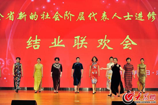 結業聯歡會上,女學員們表演的旗袍走秀節目引來陣陣喝彩。