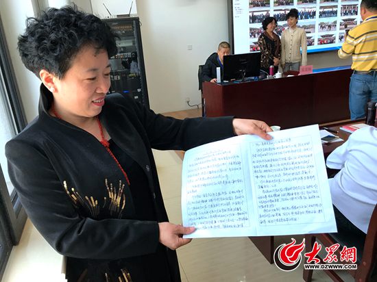 進修班的文藝委員楊慧向記者展示學員們遞交的作業和學習心得。