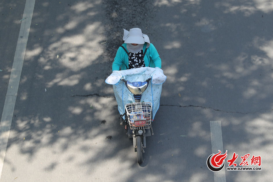 15月27日,濟南迎來新一輪的高溫天氣,在烈日的灸烤下,外出的市民紛紛想出各式奇招遮陽降溫。據濟南市氣象局發布的消息,26日,發布今年首個高溫黃色預警信號,27-29日濟南大部分地區最高氣溫可達35-36 ,市區、章丘、濟陽的部分地區最高氣溫可達37℃。圖為市民“全副武裝”在高溫下騎車出行。大眾網記者 王長坤 攝