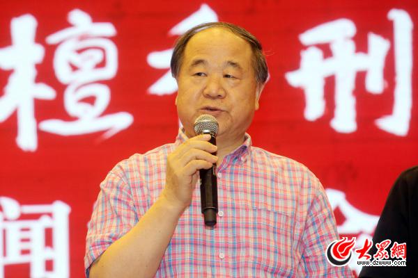 大眾網濟南5月27日訊 今天下午,民族歌劇《檀香刑》首演新聞發布會暨主創人員媒體見面會在山東藝術學院文東校區舉行。小說原作者、歌劇編劇之一的莫言在見面會上談到了自己創作的心路歷程。他認為,《檀香刑》是一部弘揚愛國主義主旋律的作品,而歌劇從另一種角度展現了這段可歌可泣的歷史。他認為,從民間汲取營養是小說和歌劇創作的重要渠道,也是中國文學和藝術走向世界的重要保障。同時,莫言也期待著6月23日《檀香刑》的首演能讓臺下的觀眾“熱淚盈眶”。