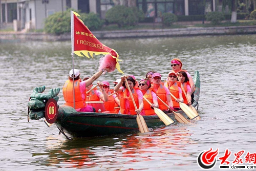 此外,來(lái)自法國(guó)的雷恩翼翔玫瑰隊(duì)也是本次比賽的一大亮點(diǎn),隊(duì)員身著統(tǒng)一的粉色上衣,熱情洋溢,十分吸晴。據(jù)了解,該隊(duì)伍由罹患乳腺癌的婦女組成,她們會(huì)定期進(jìn)行龍舟訓(xùn)練和比賽,本次參賽主要是為了增強(qiáng)身體素質(zhì)。