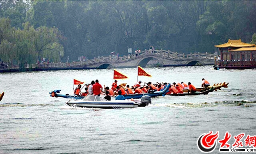 30日上午,“天下第一泉第五屆端午節(jié)龍舟賽”在濟(jì)南市大明湖景區(qū)開(kāi)賽,共有來(lái)自國(guó)內(nèi)外的12支代表隊(duì)參加角逐,吸引了大量市民和游客前來(lái)觀戰(zhàn),經(jīng)過(guò)兩個(gè)多小時(shí)的激烈比拼,最終歷下交警大隊(duì)以5分50秒19的成績(jī)獲得男子組冠軍,今晚全民健身混合隊(duì)以6分23秒62的成績(jī)獲得...[詳細(xì)]