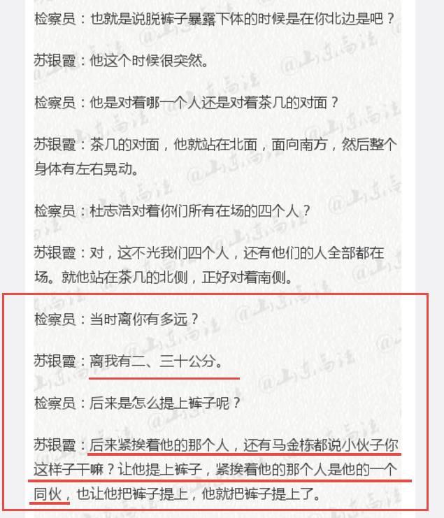 比如,當初最激怒大家的那個“陰莖蹭臉”的說法,就在法庭上被于歡和母親蘇銀霞自己否認了,表示討債者是脫褲子露出了下體,但沒有“蹭臉”的情節。