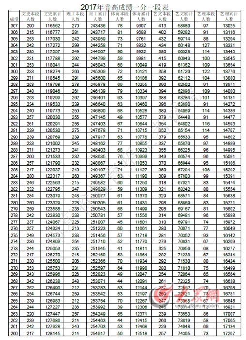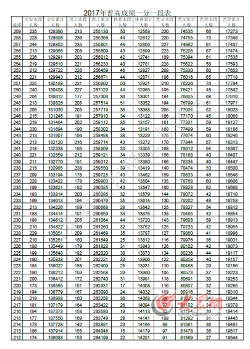 想知道自己處于全省的什么位次,仔細看看下面的圖表就知道了。