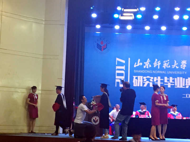 大眾網(wǎng)濟(jì)南6月27日訊 27日,山東師范大學(xué)2017研究生畢業(yè)典禮暨學(xué)位授予儀式在山東師范大學(xué)千佛山校區(qū)舉行,1890名博士、碩士參加了學(xué)位授予儀式。典禮現(xiàn)場(chǎng),一位女博士剛被授予博士學(xué)位,一男子沖上臺(tái),手捧鮮花單膝跪地,向女博士現(xiàn)場(chǎng)求婚。
