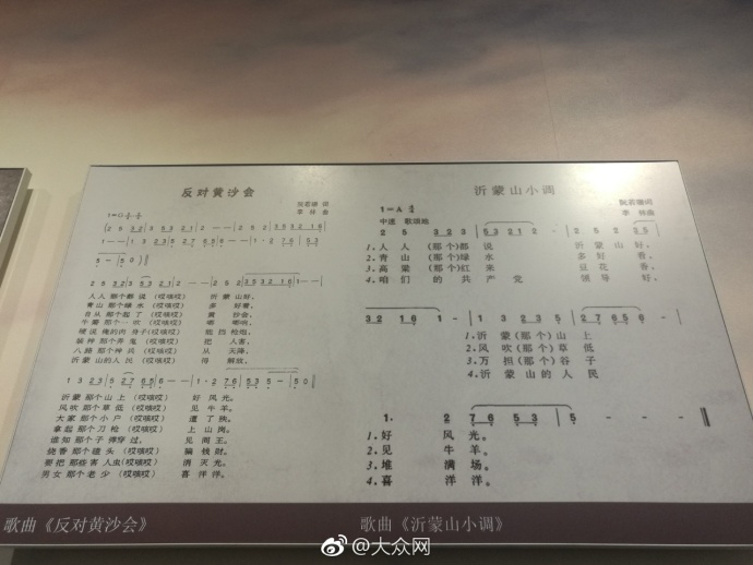 據了解,1940年,為揭露“黃沙會”這一民間武裝組織的反動面目,駐扎在白石屋村的北京抗日軍政大學第一分校文工團團長袁成隆等人,在借鑒傳統民間曲調的基礎上,創作了歌曲《反對黃沙會》,這正是《沂蒙山小調》的前身。在一次慶功會上,文工團團員阮若琳唱了這首歌曲,群眾聽后情緒激憤,當場就有300多人報名參軍。1946年,華東地區舉行民歌匯演,受到陳毅元帥稱贊,轟動全國,后來這首歌經過不斷地修改加工,大約在建國前后,形成了今天這首傳唱長城內外、大江南北的《沂蒙山小調》。