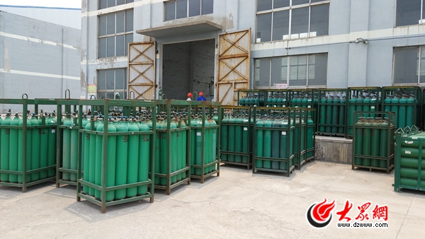 該企業(yè)充裝車間外,上百個(gè)氫氣瓶露天存放