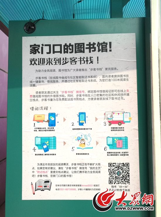 3日上午,記者來到濟南市青少年宮,在主樓正門西側(cè)找到了這臺名為“步客書棧”的智能書柜。記者看到,這臺一米多高的機柜可同時容納48個包裹,側(cè)面使用說明欄上寫著“家門口的圖書館”的標語。記者體驗后發(fā)現(xiàn),智能書柜操作流程十分簡單,掃碼關(guān)注“步客書棧”微信公眾號,綁定山東省少年兒童圖書館的借書證,進入“我要借書”服務(wù)板塊,即可面向公共圖書館藏書資源進行查詢和借閱。據(jù)“智能書柜”借還書平臺工作人員劉經(jīng)理介紹,借閱成功后,圖書館工作人員會在24小時內(nèi)將書籍免費配送至指定柜點,讀者可以像收快遞一樣,輸入驗證碼取出書籍,借閱周期為30天。此外,還書流程也十分方便,每本圖書后都有步客條碼,讀者只要到附近柜點,點擊還書按鈕,掃描步客條碼,將圖書放入柜中即可,整個借還流程完全免費。